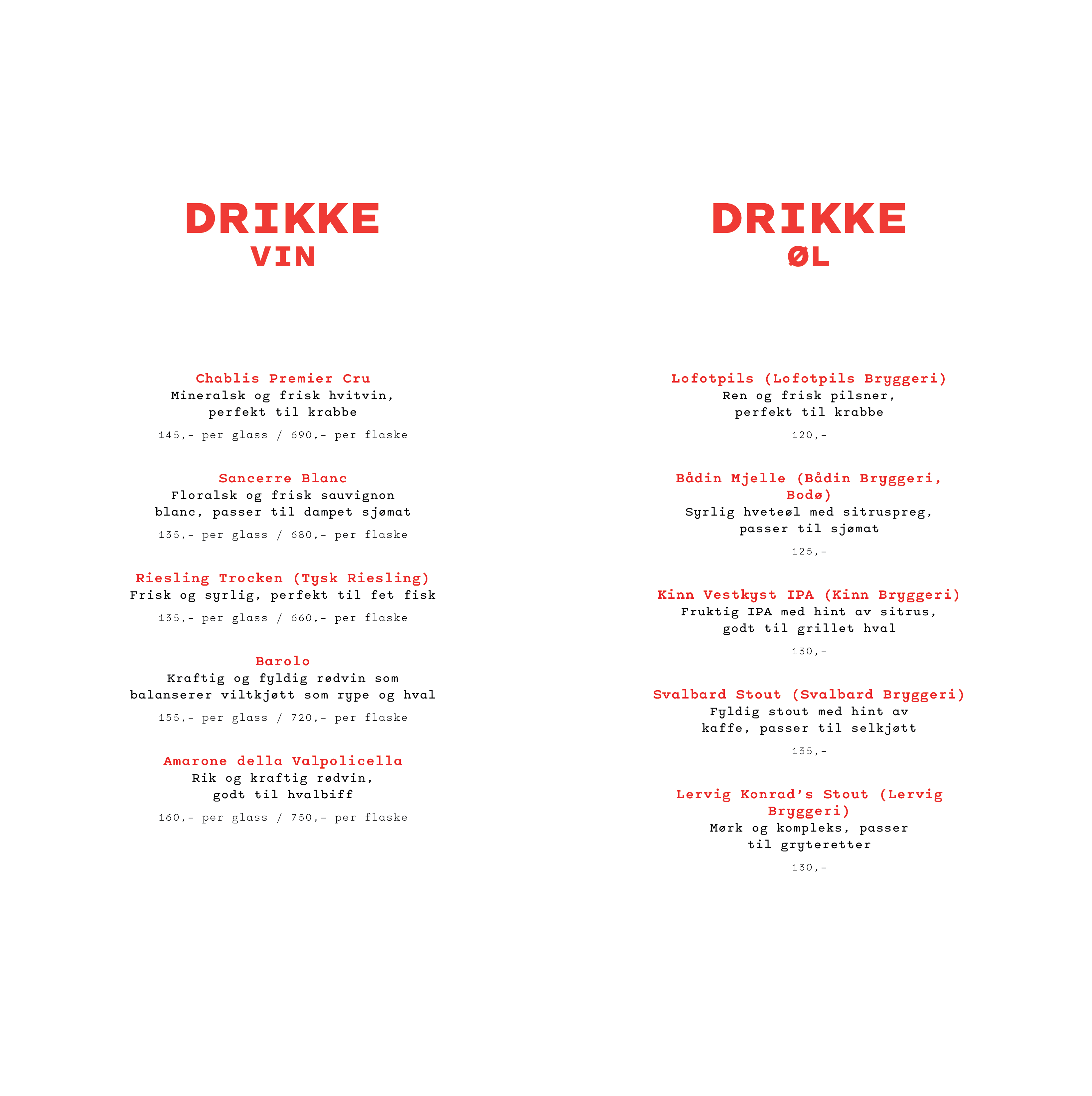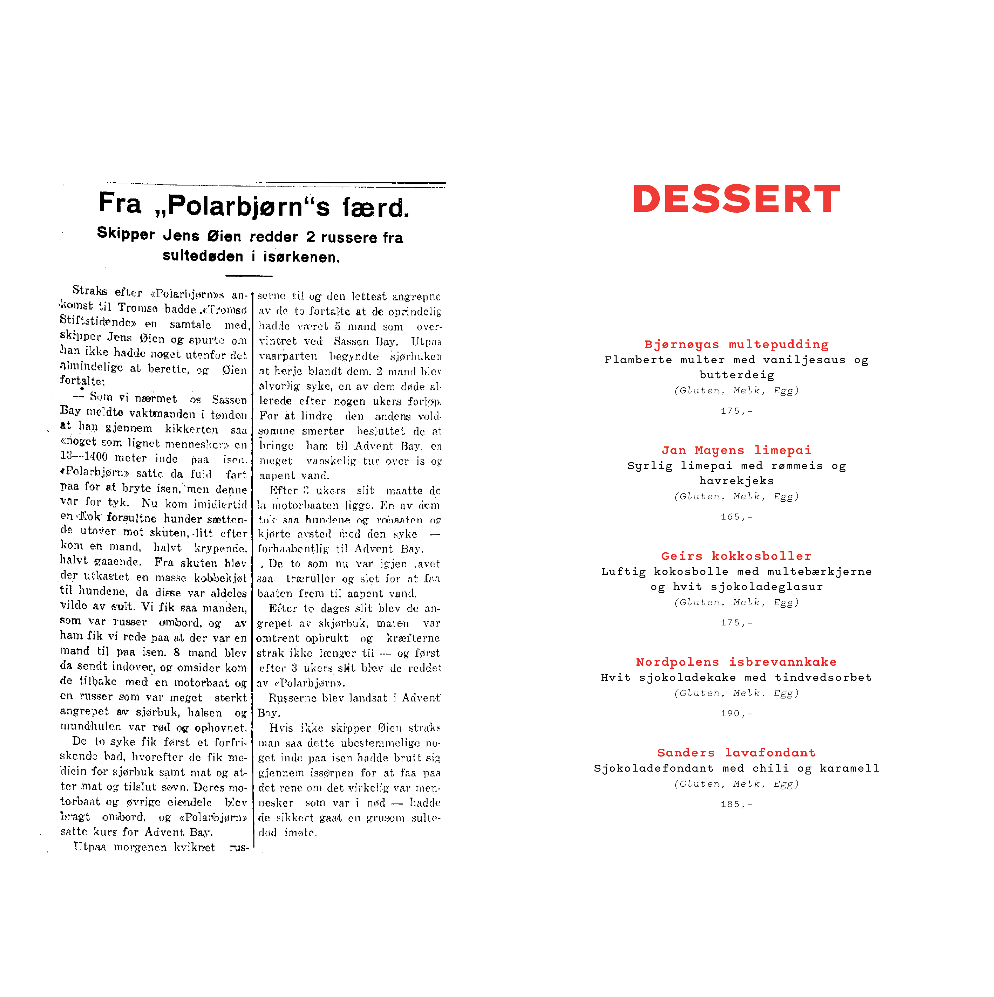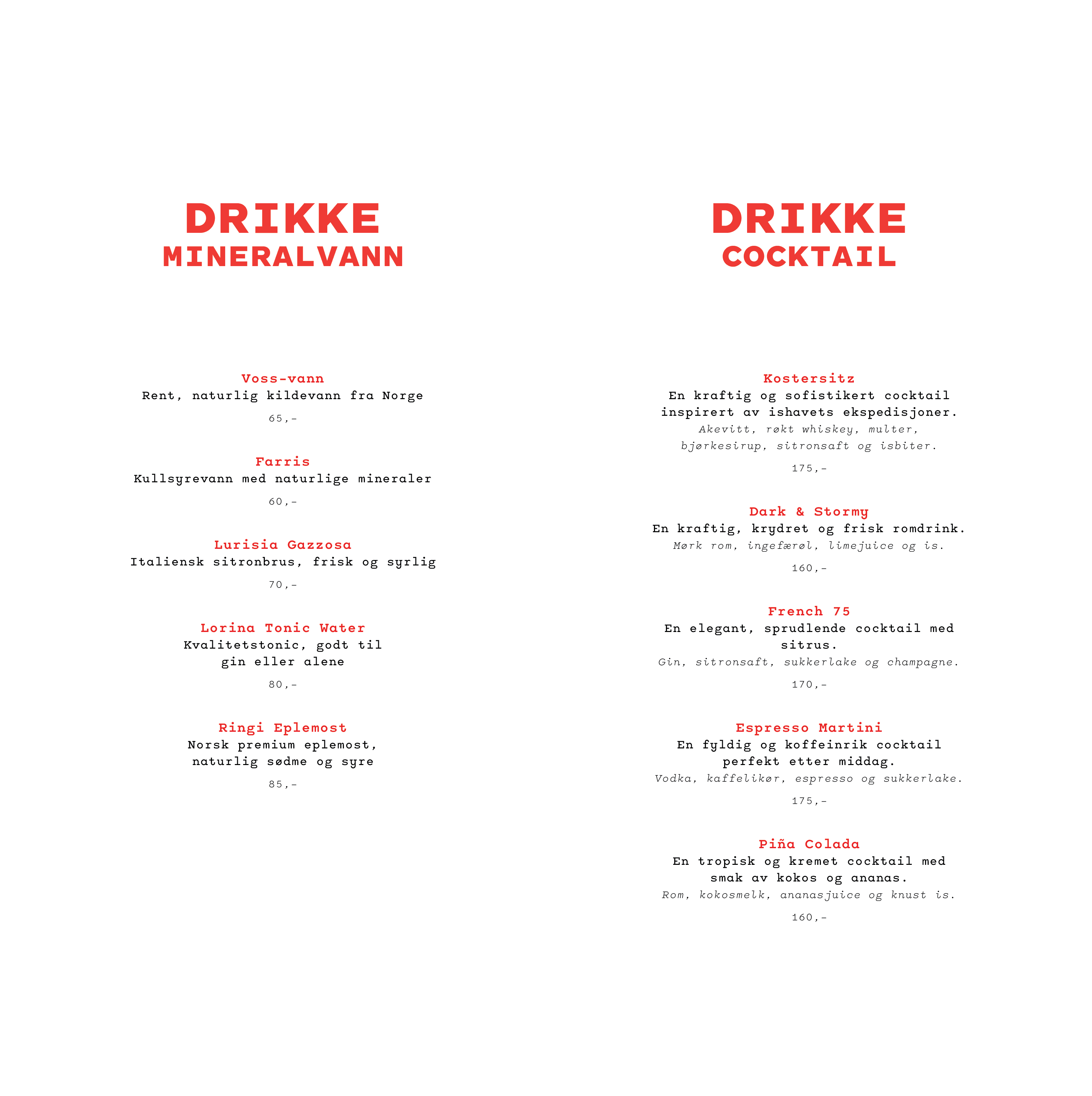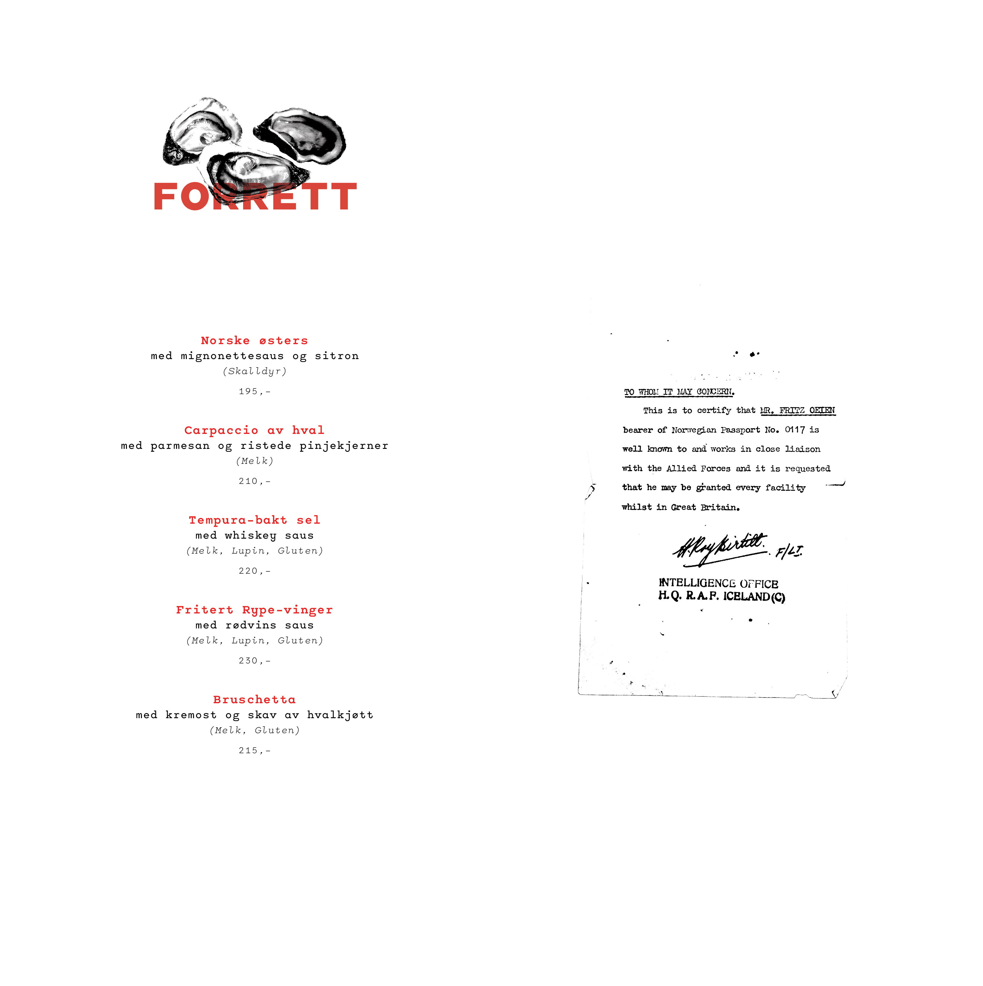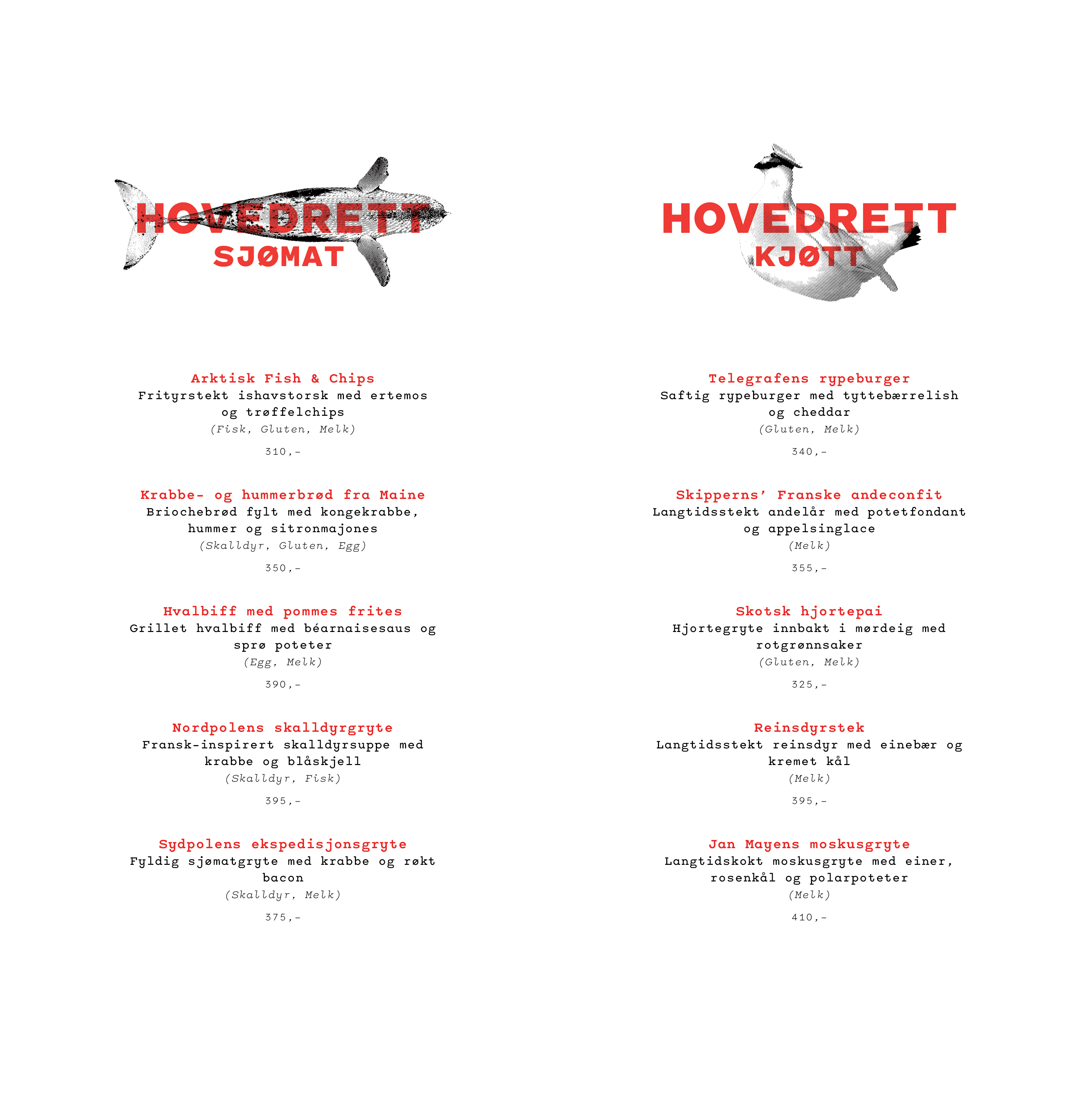 The menu is designed as a tactile object that feels like a found document from an expedition. It uses paper reminiscent of old newspapers, referencing historical articles that once covered the Øien family’s journeys. Layout and typography balance a slightly rough, archival character with a clear, contemporary hierarchy that suits a high-end restaurant. Subtle maritime details and short pieces of copy introduce dishes as “chapters” in the Villbass story, connecting local ingredients to places, routes and events from Norwegian polar history. The menu becomes both a functional tool and a storytelling surface at the table.
